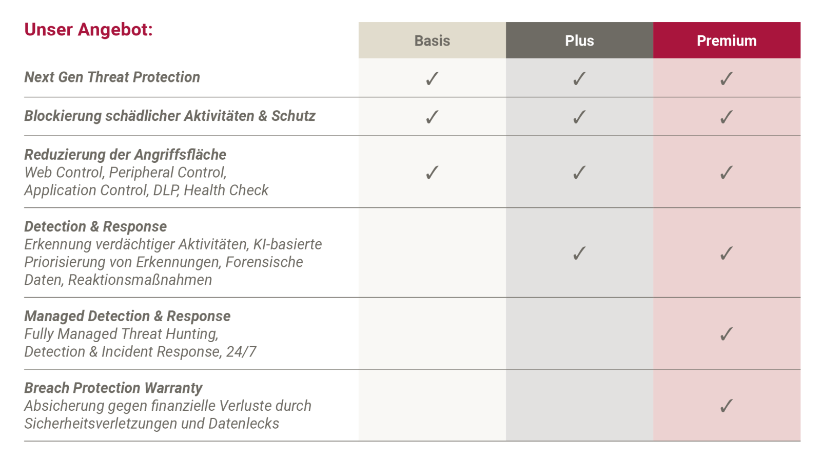 Selbst unbekannte Bedrohungen werden durch die verhaltensbasierte Analyse unseres fortschrittlichen Endpoint Protection-Systems erkannt, was eine proaktive Reaktion auf potenzielle Kompromittierungen oder Angriffe ermöglicht.